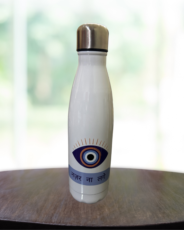 Protect your vibes and stay hydrated with the Nazar Na Lage Water Bottle. This 500 ML insulated bottle keeps your drinks hot or cold for hours, while the stylish evil-eye-inspired design wards off bad energy. Durable, leak-proof, and perfect for everyday use.